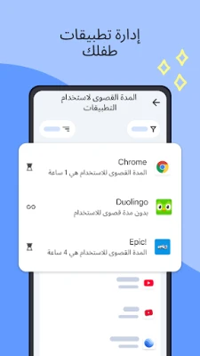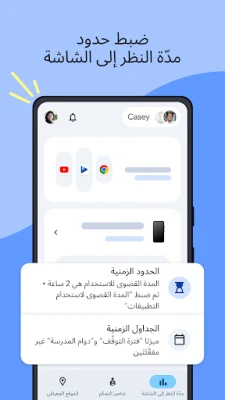 يهدف "Family Link" من Google إلى تمكين الآباء والأمهات من إرساء أساس رقمي صحي لأطفالهم في عالم متسارع. يدرك "Family Link" أهمية التوازن، لذلك يمنحك المرونة لتحديد مدة استخدام الشاشة المناسبة لكل طفل. يمكنك بسهولة تعيين حدود يومية واضحة، وتخصيص أوقات محددة للدراسة، وفترات للراحة تضمن حصول أطفالك على تجربة رقمية متوازنة. كما يتيح لك التطبيق إدارة وصول أطفالك إلى التطبيقات بفعالية، سواء بتحديد فترات استخدام لتطبيقات معينة، أو إتاحة تطبيقات تعليمية ومفيدة بدون قيود، أو حتى حظر التطبيقات غير المرغوب فيها تمامًا.