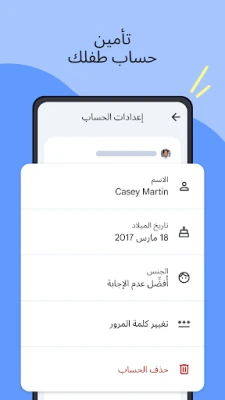 يتجاوز "Family Link" مجرد إدارة الوقت ليوفر درعاً واقياً على الإنترنت. بفضل "Family Link"، يمكنك التحكم في المحتوى الذي يصل إليه طفلك عبر خدمات Google المختلفة مثل Chrome وPlay وYouTube و"بحث Google". يمكن للوالدين إعداد أدوات رقابة أبوية قوية لحجب المواقع الإلكترونية غير الملائمة، واشتراط موافقتهم قبل تثبيت أي تطبيقات جديدة، بالإضافة إلى إدارة الأذونات الخاصة بالتطبيقات والمواقع. كما يعزز "Family Link" أمان حساب طفلك وخصوصيته، مانحاً إياك القدرة على إدارة إعدادات البيانات، ومساعدتهم في تغيير أو إعادة تعيين كلمات المرور المنسية، وتعديل معلوماتهم الشخصية، أو حذف الحساب عند اللزوم، مع مراعاة الفئة العمرية التي تتيح للطفل إدارة حسابه بنفسه.