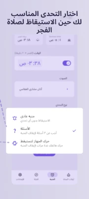 استمتع بمرونة لا مثيل لها في تخصيص تجربتك مع فجر. يمكنك تفعيل أو إلغاء تنبيهات كل صلاة على حدة، وتحديد موقعك تلقائيًا أو اختيار مدينتك المفضلة داخل المملكة لعرض الأوقات. لتحدي الفجر، اختر ما يناسبك: هل تفضل "تحدي رج الموبايل" الذي يتطلب منك هز الجهاز مرارًا للاستيقاظ، أم "تحدي الإجابة على 3 أسئلة" الذي يمكنك تحديد طبيعتها لضمان يقظتك؟ يوفر لك فجر أيضًا خيار تحديد منبه ما قبل الفجر بدقائق (5، 10، 15 دقيقة أو حسب رغبتك)، مع إمكانية تجربة التحديات قبل اعتمادها. بالإضافة إلى ذلك، استعرض التاريخ الهجري والميلادي جنبًا إلى جنب، وتتبع الوقت المتبقي للصلاة القادمة بسهولة، وتأكد من اتجاه القبلة الدقيق أينما كنت في السعودية باستخدام البوصلة المدمجة.
